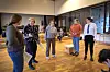 Nach dem ersten Szenedurchlauf rät Susanne Kiste ihrer Schülerin, noch mehr Energie beim Tanzen zu geben. Also noch mal von vorne. Beim Proben wird schnell klar, dass die Jugendlichen Mitspracherecht bei der Gestaltung des Stückes haben. „Hatten wir diesen Satz nicht rausgestrichen?“, hakt ein Schüler nach. Gemeinsam wird darüber diskutiert, während die Band geduldig auf ihren nächsten Einsatz wartet.
