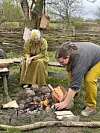 Gelegentlich weht einem der Duft von geräuchertem oder gebratenem in die Nase. Dann kann man sich sicher sein, dass ganz in der Nähe Darstellerinnen und Darsteller dabei sind, ihre Mahlzeit auf die für Wikingerinnen und Wikinger typischen Methoden zuzubereiten.