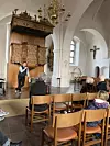 Hauke Wattenberg hat sich seit 2010, seinem Antritt als deutscher Pastor in Sonderburg, einen erstklassigen Einblick über die Geschichte des Hauses verschafft. Auf unterhaltsame Weise gab er den in der gemütlich warmen Kirche sitzenden Anwesenden eine Stunde lang unglaublich viele Informationen und Tipps, warum was in der Kirche gerade so aussieht, steht oder hängt. Oder was vielleicht noch geändert werden könnte.