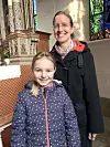 Nina und ihre Tochter Louisa Wittmann neben dem Altar. Die Elfjährige hielt es für interessant, was die Kirche alles hat. Ihre Mutter genoss die Mischung von der Geschichte Sonderburgs und der Kirche. „So hat die Geschichte etwas Fließendes", stellte sie fest.