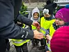 Die Mädchen und Jungen trotzten dem starken Wind.