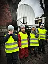 Wind und Wetter trotzen: Warm eingepackt und mit beiden Beinen fest am Boden stehend, haben die Kinder der Schlumpf-Gruppe des Deutschen Kindergartens Hadersleben am Donnerstagmorgen die Innenstadt verschönert, indem sie die Tannenbäume an der Domkirche mit ganz besonderem Weihnachtsschmuck dekorierten.