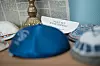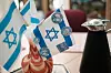 In einer Vase auf dem Tisch befinden sich Israel-Fahnen.
