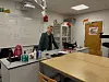 Semira Werner im Fachraum der Deutschen Privatschule Apenrade, wo sie die Schülerinnen und Schüler in den naturwissenschaftlichen Fächern Biologie und Physik/Chemie unterrichtet
