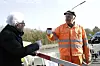 Beim Fototermin am Grenzübergang standen Journalisten, Fotografen und TV-Anstalten Schlange, gut unterhalten von Karsten Tüchsen Hansen.