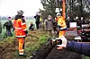 Punkt zehn Uhr wurde der erste Pfosten des 70 Kilometer langen Wildschweinzauns ins Erdreichgehämmert. Oberförster Bent Rasmussen (Bildmitte) gab das Signal.