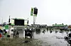Juli 2025: Ein Stadtbus blieb samt seiner Fahrgäste in den Wassermassen in der Flensburger Neustadt stecken.