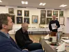 Mads Mikkel Tørsleff eröffnete die Präsentation des erstmals 1889 erschienenen historischen Jahrbuches im Apenrader Folkehjem. Neben ihm Redaktionsmitglied Mogens Rostgaard Nissen und Mikkel Leth Jespersen (ganz links), Vorsitzender von „Historisk Samfund for Sønderjylland“.