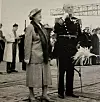 Das Foto aus dem neuen Jahrbuch zeigt Amtmann Kresten Refslund Thomsen und seine Frau Ingeborg vor dem Eintreffen des dänischen Königspaares im Apenrader Hafen Ende der 1940er Jahre.