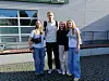 Auch Sportvorstand Stefan Kretzschmar von den Füchsen Berlin ließ sich Zeit für ein Erinnerungsfoto mit den drei Schülerinnen aus Tingleff.