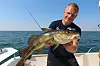 Mats Korth mit einem Dorsch – mit dem Angeln auf dem Kleinen Belt hat er sein Hobby zum Beruf gemacht, indem er Angelurlaube für Gäste organisiert.