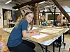 Die beiden Teilnehmerinnen Bellis (l.) und Marie lernen in dieser Woche die Stilart des Abstrakten kennen.