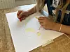 Mia lernt in dieser Woche, wie man Formen und Kanten zeichnet und als Malstil nutzen kann.