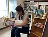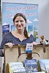 Steffi Bieber-Geske mit ihrem Buch in der Deutschen Bücherei Sonderburg, wo sie einmal in der Woche für die Gäste der Bücherei da ist.