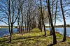Eine Allee teilt die beiden Seen, die in einer ehemaligen Kiesgrube entstanden sind und eigentlich ein großes Gewässer sind.