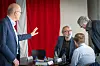 Carsten Friis, Konzernchef und deutscher Honorarkonsul (Mitte), hat einen Branchenkollegen übernommen. Hier ist er am Rande des nordschleswigschen Wirtschaftsgipfels vom „UdviklingsRåd Sønderjylland“ (URS) im Gespräch unter anderem mit Sonderburgs Bürgermeister Erik Lauritzen (Soz.) zu sehen.