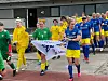 Einlauf der Spielerinnen. Die Mannschaft aus Oberschlesien spielte in Gelb, die Nordschleswigerinnen in Blau-Gelb.