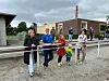 (V. l.): Simon Wenzel, Kerstin Gosch, Annette Lorenzen und Simone Sippel Pedersen am Spielfeldrand der Europeada in Sonderburg