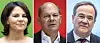 Sie wollen Angela Merkel als Bundeskanzlerin bzw. Bundeskanzler beerben: Annalena Baerbock (Bündnis 90/Die Grünen), Olaf Scholz (SPD) und Armin Laschet (CDU).
