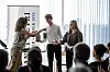 Schulleiterin Svenja Kuhfuss bedankte sich bei Schülersprecher Bjørn Bolvinkel Andersen und Schülersprecherin Malene Erhardt, die die Festveranstaltung moderierten.