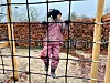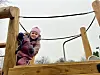 Aylena in Aktion: Der Weg zur Rutsche führt über das Kletternetz.