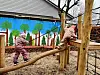 Diese Holzstämme sind zum Klettern gemacht: Der Deutsche Kindergarten Lunden hat einen neuen Spielplatz. Und der wird von den Kindern begeistert genutzt.