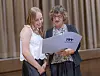 Lächelnd überreicht sie das Legat an Isabell Schneider. Sie nimmt es verlegen lächelnd entgegen. Man merkt es ihr an: Die Aufmerksamkeit ist ihr nicht geheuer! Die Begründung für die Würdigung klingt wie ein Best-of aus dem Schulalltag: stets hilfsbereit, verantwortungsbewusst, bringt den Müll raus – und das alles mit einem Lächeln!