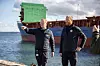 Thomas Lund Sørensen und Kollege Christian Krag Hildebrandt an der Stelle des Apenrader Hafens, wo in der Sturmflutnacht die Watertubes reißenFoto: Karin Riggelsen