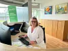 Doris Brüning Wolz an ihrem neuen Arbeitsplatz hinter dem Empfangstresen im Haus Nordschleswig
