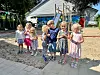 Beim Sommerfest am Deutschen Kindergarten Lunden eröffneten die großen Kindergartenkinder feierlich die neuen Spielmöglichkeiten. Abteilungsleiterin Marlene Elneff erläuterte, wer den Spielplatz möglich gemacht hat.
