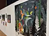 Anfangs treffen die Gäste auf die magische Käferwelt von Nana Schulz. Gegenüber die Schattenmenschen des langjährigen Mitglieds Jes Mogensen und dann weiter durch die Farbexplosion von Elmar Jacobs Gemälden.