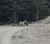 Ein Wolf im Revier bei Hovborg hat laut Foto 2021 einen Fuchs erlegt, mit dem er vermutlich seinen Nachwuchs gefüttert hat.