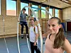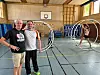 Patrick Møller, Christoph Clausen und Paprika Møller beim Training in der Turnhalle der Deutschen Schule Sonderburg