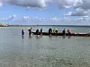 Während eine Bootsbesatzung rudert, hat der Rest der Truppe Pause.