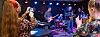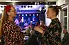 Angela Jensen (links) und Musiklehrerin Helene Hellesøe Appel beim Workshop. Im Hintergrund sind Jesper Ry und Band zu sehen.