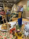 Die Kaminhalle war bunt und festlich geschmückt und eingedeckt.