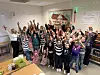 Am Tag nach der Nachricht feiern Angestellte und Kinder der Schule die Entscheidung mit einem gemeinsamen Frühstück.