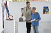 Morten Krogsgård, Vorsitzender des Kunstvereins, und Marilyn Nissen in der Ausstellung zu Ehren von Franciska Clausen.