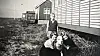 Ingrid Larsen (r.) mit dem Hund Bjørn, ihrer Freundin Jutta aus Hamburg und dem Sohn eines Sägewerk-Mitarbeiters