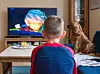 Henrik und Mischlingshund Bruno beim Fernsehen