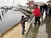 Die Kästen wurden unter der Brücke an der Marina Minde bei Ekensund (Egernsund) ins Wasser gehängt.