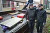 Die Steinmetze des Unternehmens an der Ripener Landstraße haben laut Claes Fuglsang ganze Arbeit geleistet. Orla Jensen (links) von der Apenrader Abteilung und Steinmetz Bent Lauridsen, Hadersleben, neben dem neuen Schmuckstück