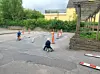 Kindergarten Lunden mit Fahrrad-Parcours und Kuchen am Start