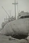 Die Flüchtlinge kamen mit teilweise beschädigten Schiffen in Dänemark an, die während der Fahrt durch die Ostsee oft von Flugzeugen oder U-Booten beschossen wurden. Auf dem Foto ein Schiff in Nyborg.