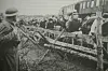 Erst 1947 durften größere Kontingente deutscher Flüchtlinge die Lager in Dänemark verlassen. Die Westalliierten blockierten lange deren Ausreise wegen der schlechten Versorgungslage in Deutschland im Vergleich zu Dänemark. Das Foto zeigt deutsche Flüchtlinge auf dem Weg von Bahnhof Pattburg zur deutsch-dänischen Grenze unter Aufsicht britischer Soldaten.