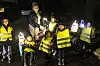 In ihren Leuchtwesten waren die Kinder in der Dunkelheit des Abends gut zu sehen.