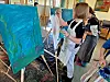 Die Schülerinnen und Schüler arbeiteten an ihren Kunstwerken für etwa vier Stunden mit verschiedenen Druck- und Maltechniken.
