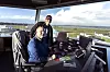 Wachwechsel im Kontrollturm: Zwei Mitarbeiter des Flughafens an ihrem Arbeitsplatz.