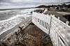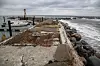 Die von den Wassermassen zerstörte Außenmole ist abgesperrt.