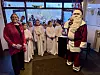 Schulleiterin Marion Petersen nahm vom Weihnachtsmann Werner und dessen Frau Kirsten eine private Spende für die Schule in Höhe von 1.000 Kronen entgegen.